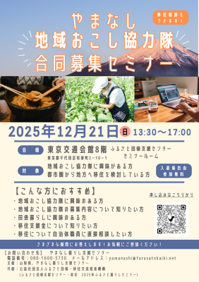 【2025年12月21日(日)】やまなし地域おこし協力隊合同募集セミナー